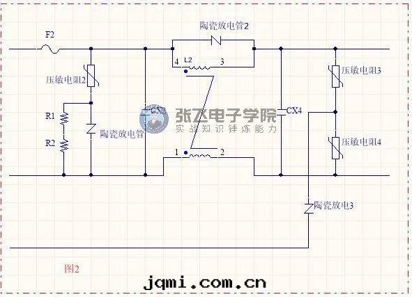 共(gòng)模電(diàn)感(gǎn)上(shàng)並(bìng)聯陶瓷放(fàng)電(diàn)管(guǎn)與(yǔ)L相與(yǔ)N相对(duì)大(dà)地(dì)跨接壓敏電(diàn)阻串陶瓷放(fàng)電(diàn)管(guǎn)一(yī)樣(yàng)的(de)作(zuò)用(yòng),有(yǒu)时(shí)可(kě)能(néng)只(zhī)会(huì)出(chū)現(xiàn)一(yī)組電(diàn)路(lù)。作(zuò)用(yòng)都时(shí)用(yòng)来(lái)防共(gòng)模雷(léi)擊。(文(wén)章(zhāng)源于(yú)张(zhāng)飛電(diàn)子學(xué)院(yuàn),如(rú)有(yǒu)侵犯,烦請告知)