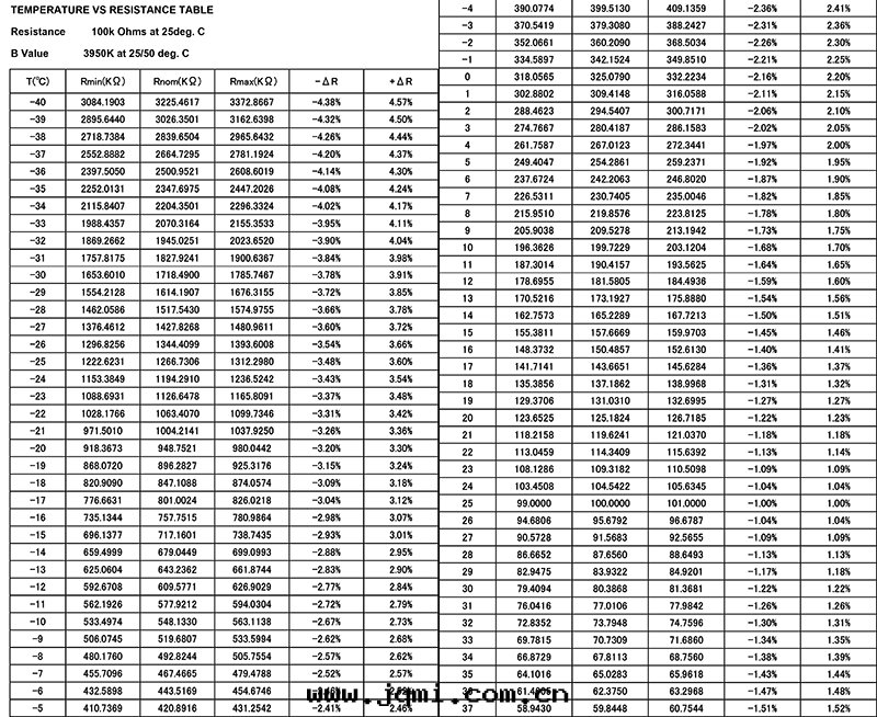 K值对(duì)照表(biǎo)是(shì)一(yī)種(zhǒng)用(yòng)于对(duì)比不(bù)同(tóng)廠(chǎng)家100K热(rè)敏電(diàn)阻特(tè)性(xìng)的(de)工具。它(tā)提(tí)供了(le)不(bù)同(tóng)热(rè)敏電(diàn)阻在(zài)不(bù)同(tóng)温(wēn)度(dù)下(xià)的(de)阻值信(xìn)息,使得用(yòng)戶能(néng)夠根(gēn)據(jù)實(shí)際需求選择合适的(de)電(diàn)阻。