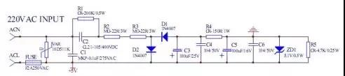 2、限流電(diàn)容須接于火線(xiàn),耐压要(yào)足夠大(dà)(大(dà)于400V),並(bìng)加串防浪湧沖击兼保險電(diàn)阻和(hé)並(bìng)放(fàng)電(diàn)電(diàn)阻。