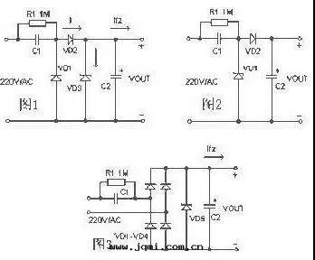 如(rú)图(tú)-1,C1 为(wèi)降压電(diàn)容器,D2 为(wèi)半波(bō)整流二(èr)极(jí)管,D1 在(zài)市電(diàn)的(de)負半周时(shí)給(gěi)C1 提(tí)供放(fàng)電(diàn)回(huí)路(lù),D3 是(shì)穩压二(èr)极(jí)管R1 为(wèi)關(guān)斷電(diàn)源後(hòu)C1 的(de)電(diàn)荷洩放(fàng)電(diàn)阻。在(zài)實(shí)際應(yìng)用(yòng)时(shí)常常采用(yòng)的(de)是(shì)图(tú)-2的(de)所(suǒ)示的(de)電(diàn)路(lù)。當需要(yào)向(xiàng)負载(zài)提(tí)供較大(dà)的(de)電(diàn)流时(shí),可(kě)采用(yòng)图(tú)-3 所(suǒ)示的(de)橋(qiáo)式整流電(diàn)路(lù)。整流後(hòu)未經(jīng)穩压的(de)直(zhí)流電(diàn)压一(yī)般会高于30 伏,並(bìng)且(qiě)会随負载(zài)電(diàn)流的(de)變(biàn)化(huà)發(fà)生(shēng)很大(dà)的(de)波(bō)動(dòng),这(zhè)是(shì)因为(wèi)此(cǐ)類(lèi)電(diàn)源內(nèi)阻很大(dà)的(de)緣故所(suǒ)致(zhì),故不(bù)适合大(dà)電(diàn)流供電(diàn)的(de)應(yìng)用(yòng)场(chǎng)合。