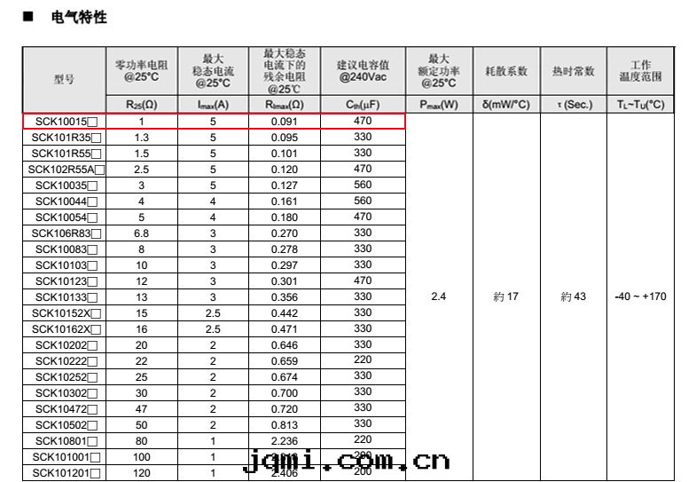 系(xì)列 D Lmin. d P Amax. Tmax. W SCK10 11.5 31 0.8±0.02 5±0.5 11.5 請见電(diàn)气(qì)特(tè)性(xìng)表(biǎo) 請见電(diàn)气(qì)特(tè)性(xìng)表(biǎo)