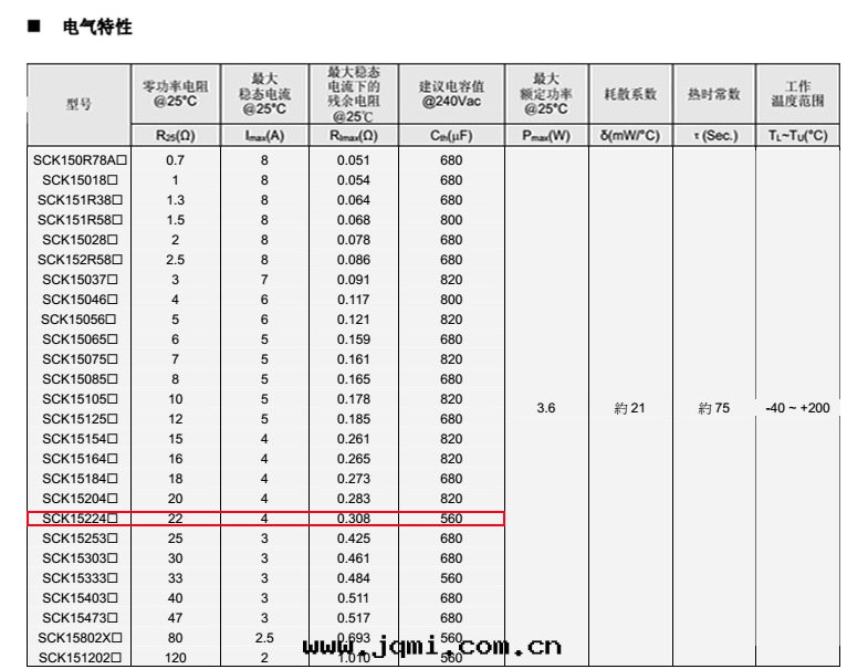 系(xì)列 D Lmin. d P Amax. Tmax. W SCK15 16.5 29 1.0±0.02 7.5±1 16.5 请見(jiàn)電(diàn)气(qì)特(tè)性(xìng)表(biǎo) 请見(jiàn)電(diàn)气(qì)特(tè)性(xìng)表(biǎo)