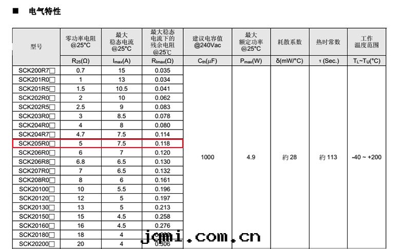 热(rè)敏電(diàn)阻: VT 热(rè)敏電(diàn)阻型号(hào): SCK205R0MSBY 热(rè)敏電(diàn)阻片(piàn)徑: Φ20mm 零(líng)功率電(diàn)阻@25℃: 5Ω 工作(zuò)温(wēn)度(dù)範圍: -40℃±200℃ 儲存温(wēn)度(dù)範圍: -40℃±85℃
