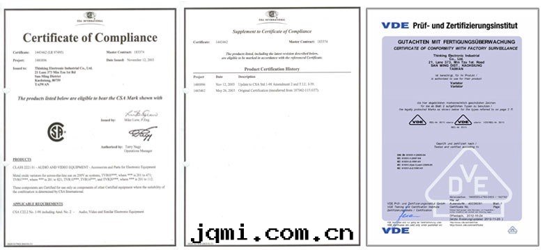 UL: E314979/E186 cUL:E314979 CQC03001005165