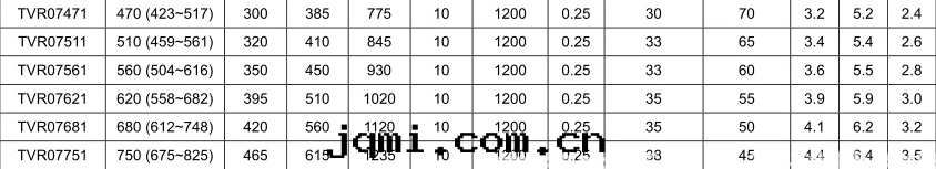 壓敏電(diàn)阻片徑: Φ7mm 标稱壓敏電(diàn)壓(@1mADC): 560V(504~616)