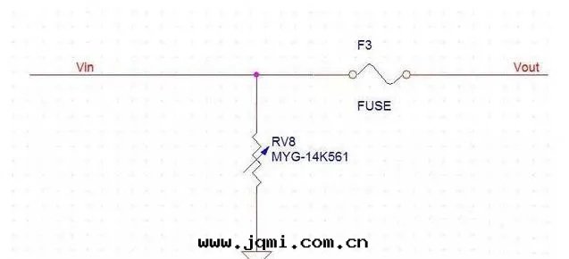 第(dì)二(èr)類(lèi)情(qíng)況是(shì)Vin有(yǒu)電(diàn)网(wǎng)瞬間(jiān)波(bō)動(dòng)大(dà)電(diàn)流过(guò)来(lái),但電(diàn)压是(shì)沒(méi)變(biàn)。这(zhè)时(shí)压敏電(diàn)阻RV8沒(méi)有(yǒu)毀壞,照樣(yàng)工作(zuò)。但保險丝(sī)F3因有(yǒu)大(dà)電(diàn)流經(jīng)过(guò),保險丝(sī)立即就(jiù)熔斷了(le)。後(hòu)邊(biān)的(de)電(diàn)路(lù)得以保護。这(zhè)时(shí)的(de)情(qíng)況就(jiù)是(shì)压敏電(diàn)阻沒(méi)事(shì),保險丝(sī)斷了(le)。