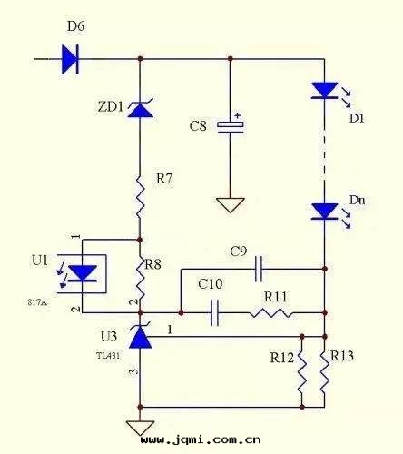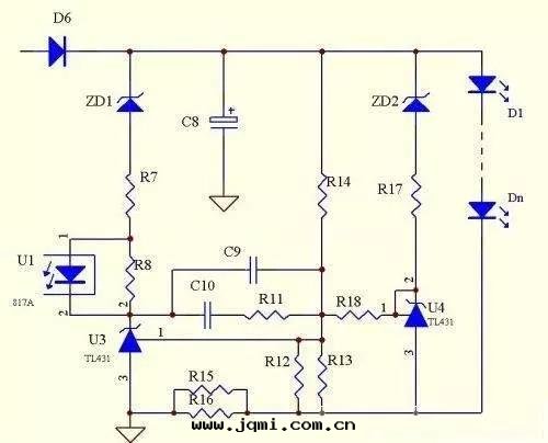 2、單个(gè)TL431恒流改進(jìn)型電(diàn)路(lù)