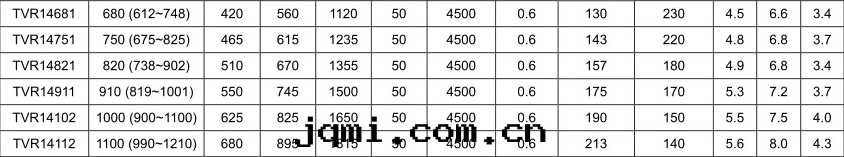 压敏電(diàn)阻片(piàn)徑: Φ14mm 标(biāo)稱压敏電(diàn)压(@1mADC): 680V(612~748)