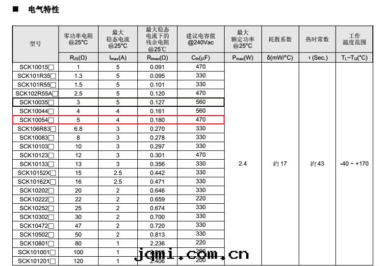 热(rè)敏電(diàn)阻: VT 热(rè)敏電(diàn)阻型号(hào): SCK10054MSY 热(rè)敏電(diàn)阻片(piàn)徑: Φ10mm 零(líng)功率電(diàn)阻@25℃: 5Ω 工作(zuò)温(wēn)度(dù)範圍: -40℃±170℃ 儲存温(wēn)度(dù)範圍: -40℃±85℃