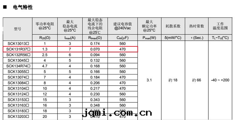 热(rè)敏電(diàn)阻: VT 热(rè)敏電(diàn)阻型号(hào): SCK131R37MSY 热(rè)敏電(diàn)阻片徑: Φ13mm 零(líng)功率電(diàn)阻@25℃: 1.3Ω 工作(zuò)温(wēn)度(dù)範圍: -40℃±170℃ 儲存温(wēn)度(dù)範圍: -40℃±85℃