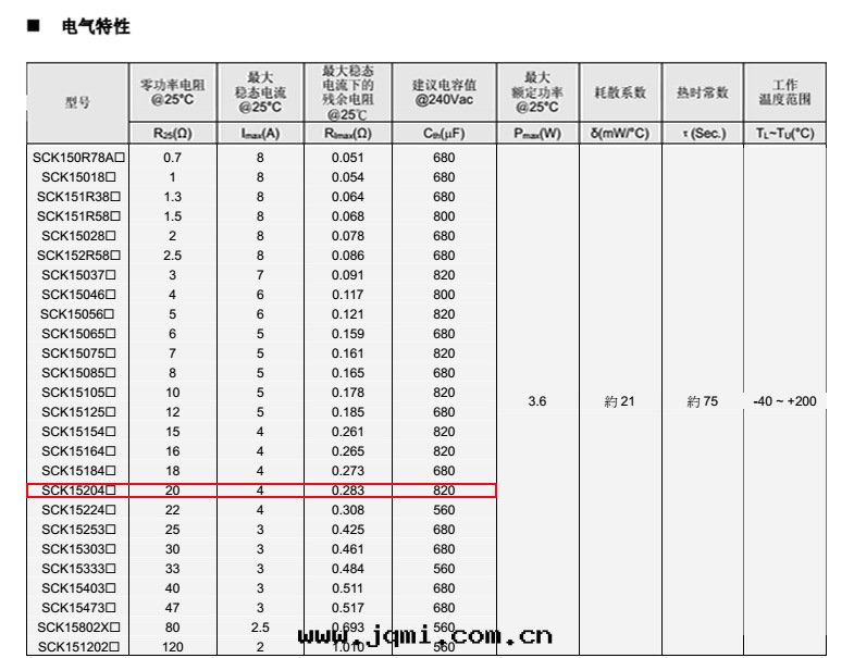 热(rè)敏電(diàn)阻: 穩騰 热(rè)敏電(diàn)阻型号(hào): SCK15204MSY 热(rè)敏電(diàn)阻片(piàn)徑: Φ15mm 零(líng)功率電(diàn)阻@25℃: 20Ω 工作(zuò)温(wēn)度(dù)範圍: -40℃±200℃ 儲存温(wēn)度(dù)範圍: -40℃±85℃