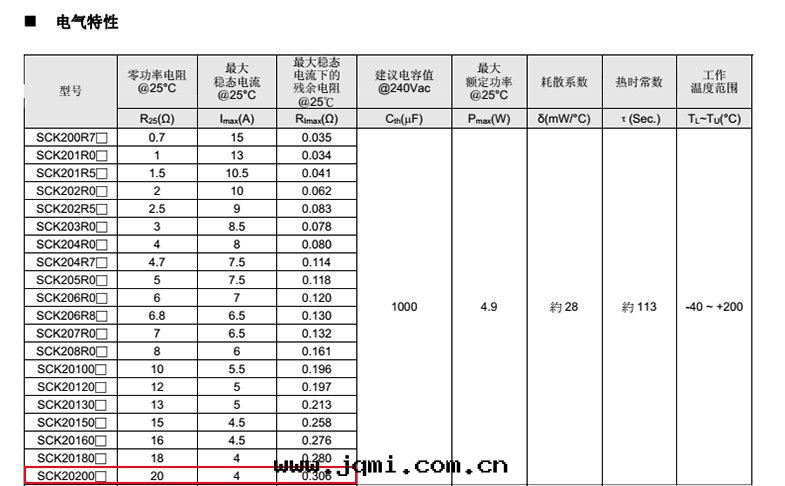 系(xì)列 D Lmin. d P Amax. Tmax. W SCK20 21.5 26 1.0±0.02 7.5±1 21.5 请見(jiàn)電(diàn)气(qì)特(tè)性(xìng)表(biǎo) 请見(jiàn)電(diàn)气(qì)特(tè)性(xìng)表(biǎo)