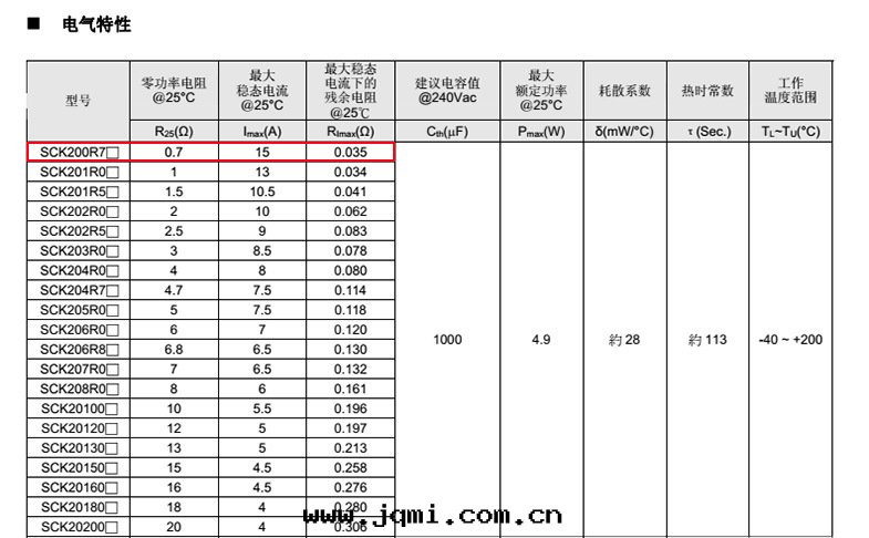 系(xì)列 D Lmin. d P Amax. Tmax. W SCK20 21.5 26 1.0±0.02 7.5±1 21.5 请見(jiàn)電(diàn)气(qì)特(tè)性(xìng)表(biǎo) 请見(jiàn)電(diàn)气(qì)特(tè)性(xìng)表(biǎo)