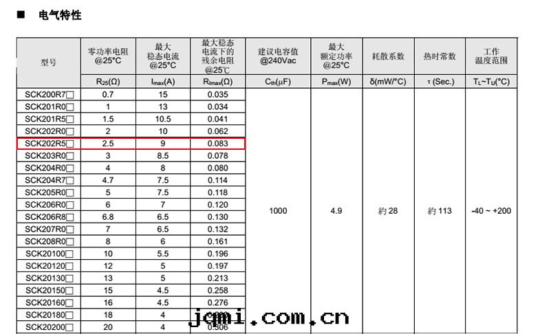 系(xì)列 D Lmin. d P Amax. Tmax. W SCK20 21.5 26 1.0±0.02 7.5±1 21.5 请見(jiàn)電(diàn)气(qì)特(tè)性(xìng)表(biǎo) 请見(jiàn)電(diàn)气(qì)特(tè)性(xìng)表(biǎo)