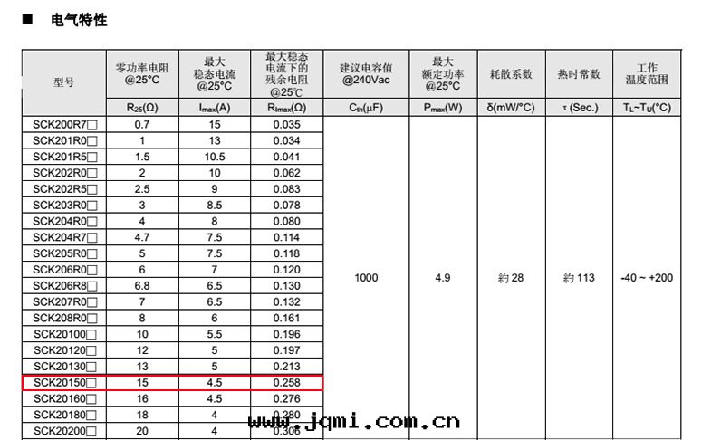 系(xì)列 D Lmin. d P Amax. Tmax. W SCK20 21.5 26 1.0±0.02 7.5±1 21.5 请見(jiàn)電(diàn)气(qì)特(tè)性(xìng)表(biǎo) 请見(jiàn)電(diàn)气(qì)特(tè)性(xìng)表(biǎo)