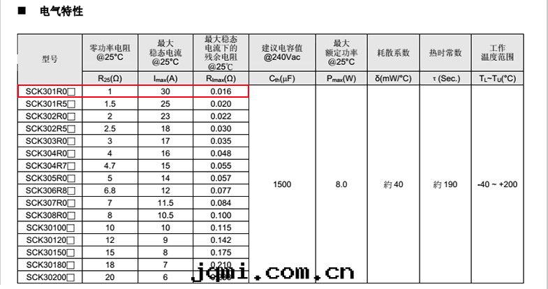 系(xì)列 D Lmin. d P Amax. Tmax. W SCK30 36 23 1.0±0.02 7.5±1 36.0 请見(jiàn)電(diàn)气(qì)特(tè)性(xìng)表(biǎo) 请見(jiàn)電(diàn)气(qì)特(tè)性(xìng)表(biǎo)