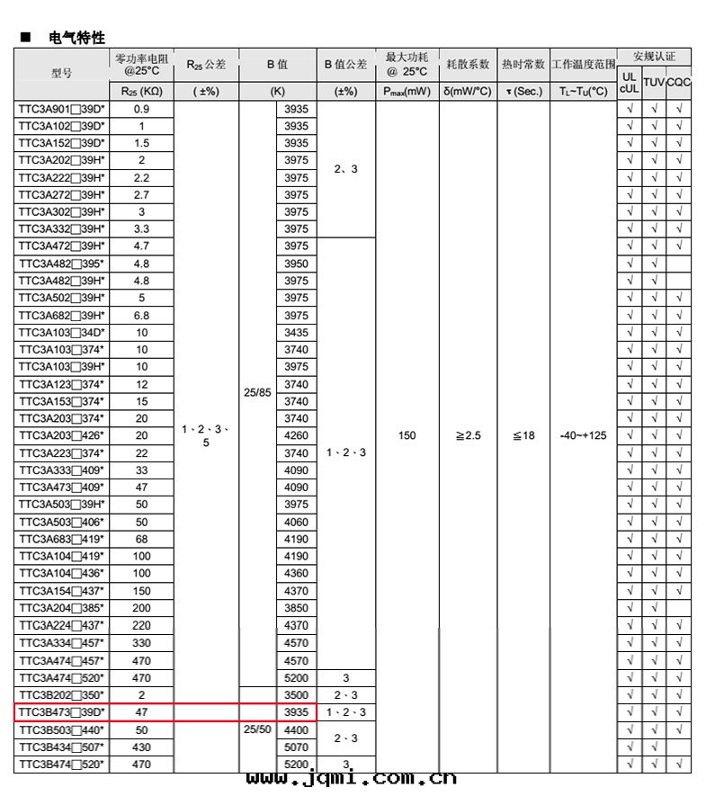 热(rè)敏電(diàn)阻型号(hào)::TTC3B473F39DEY |