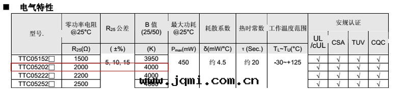 2K热(rè)敏電(diàn)阻TTC05202EY