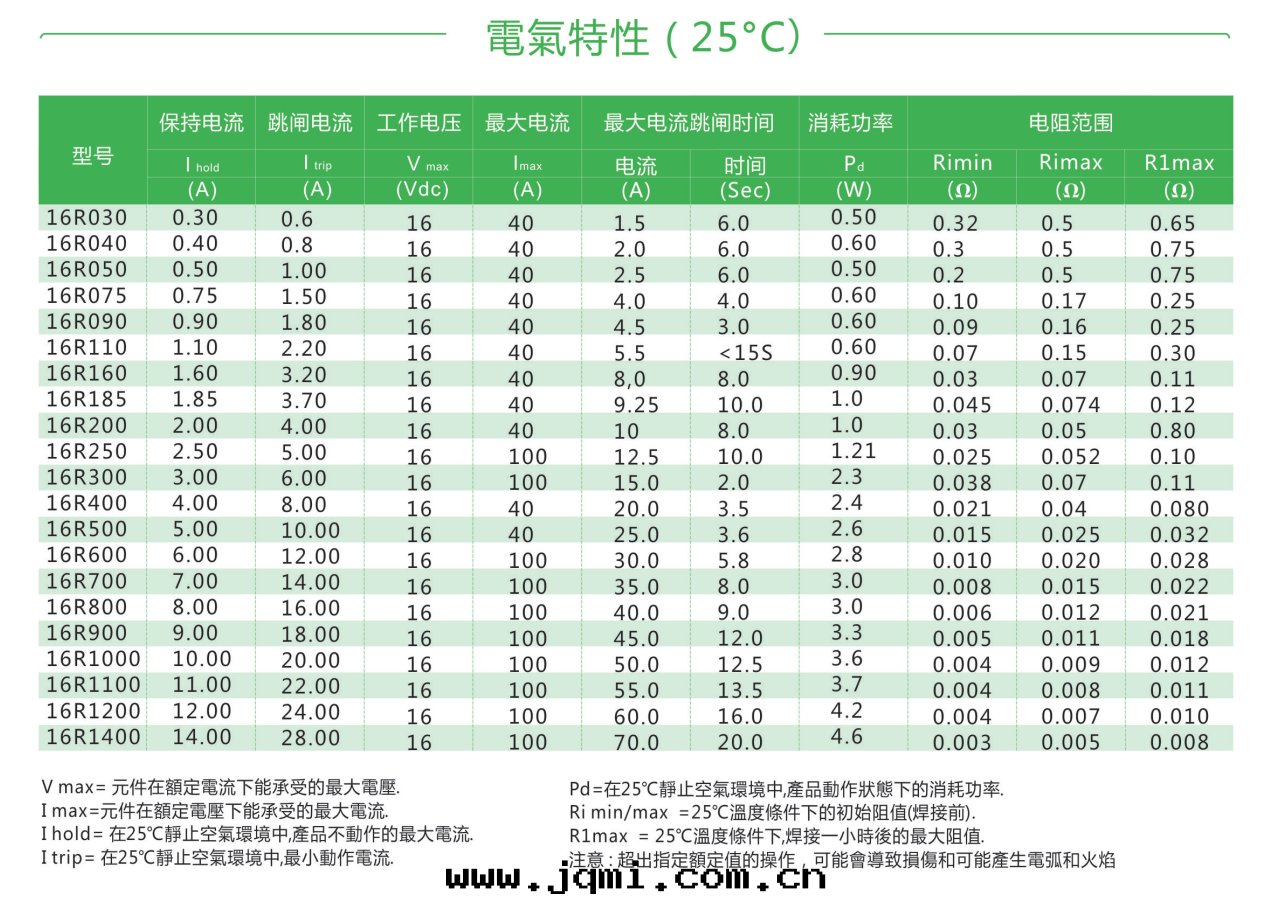 16R自(zì)恢複插件(jiàn)PPTC热(rè)敏電(diàn)阻