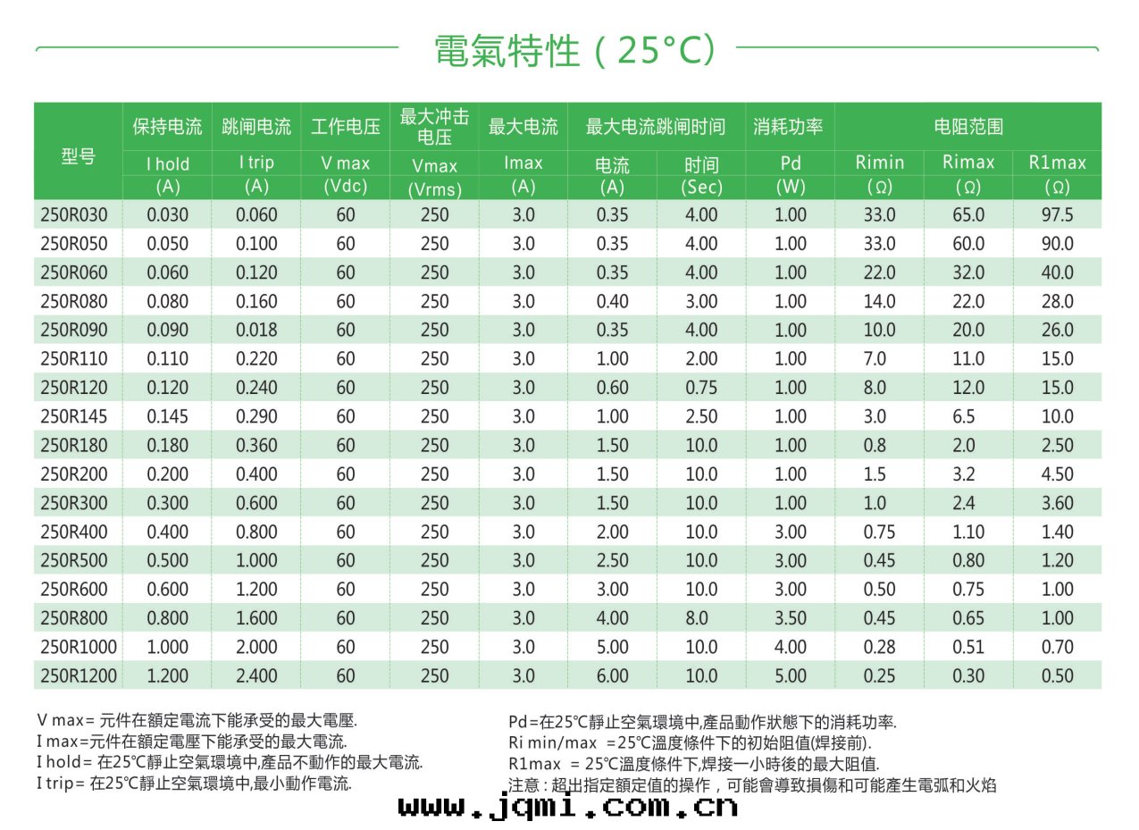 250R自(zì)恢複插件(jiàn)PPTC热(rè)敏電(diàn)阻