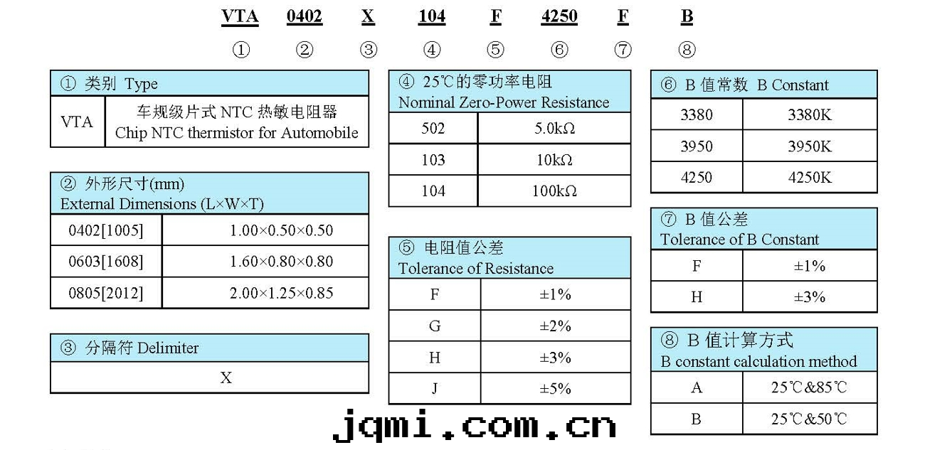 三(sān)种尺(chǐ)寸(cùn)(0402/0603/0805)都具有(yǒu)相同(tóng)的(de)B常數和(hé)電(diàn)阻值 , 易于(yú)在(zài)設計(jì)时(shí)缩減尺(chǐ)寸(cùn);